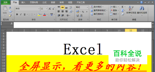 接着单击“全屏显示”选项,这时Excel界面就显示全屏啦!菜单栏和编辑栏都不见啦!而且看到内容更多哦!如图所示: