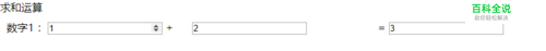 首先实现如下图所示的布局效果,其中h5模块的代码: <p>求和运算</p> <form > <div class="f"> <div class="n1"> <p >数字1: <input type="number" id="num1"> +</p> </div> <div class="n2"> <input type="number" id="num2" > </div> <div class="n3"> <p>= <input type="number" id="num3" onFocus="add()"> </p> </div> </div> </form>