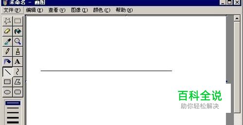 然后,我们用鼠标点击直线,并在工具样式栏中选择第一个样式,在蘸取黑色后,我们会在画纸上面画出一条水平的直线。