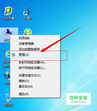 右击电脑桌面的【计算机】,选择弹出的对话框中的【管理】,如下图