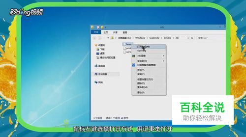 确定后在打开的窗口中找到“hosts”文件,右击选择打开方式。
