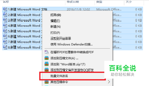 选择全部文档,点击右键,出现“批量文件改名”菜单,点击进去,如图