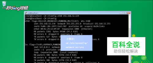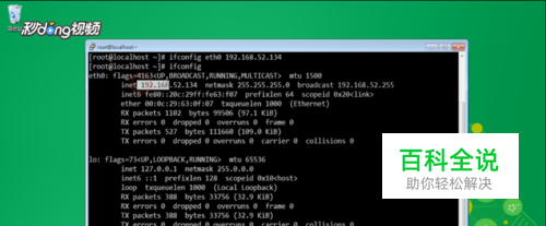 首先输入“ifconfig eth0 192.168.52.134”,点击enter键,输入“ifconfig”,点击enter键,可查看IP地址。