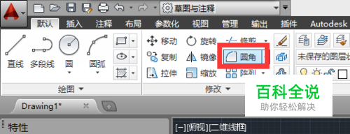CAD画两曲线的圆倒角