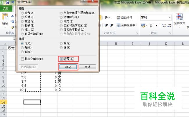 点击“转置”——“确定”
