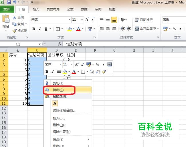 选中想要转换的例——在选中的内容上右击——点击“复制”