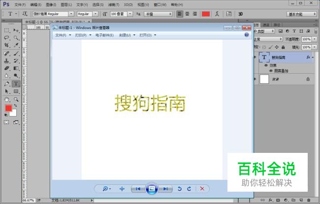 接下来,我们输入文字,小编就以搜狗指南为例给大家介绍一下吧,文字属性如图(最好选择粗一点的文字,这样效果比较明显)。
