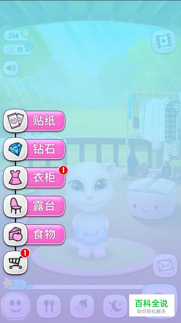 安吉拉有很多漂亮的服饰,安吉拉的房子也有许多装饰品,这些在哪看呢?点击图一手指所指位置,这是个购物车,购物车里就有很多商品哦。随着等级的提升,解锁的东西会越来越多,当然这些是需要金币来买的。