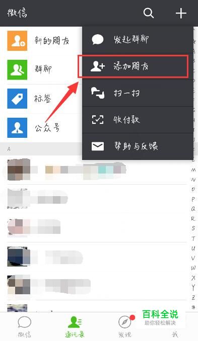 回到主界面,点解右上角的“+”,点击添加朋友。