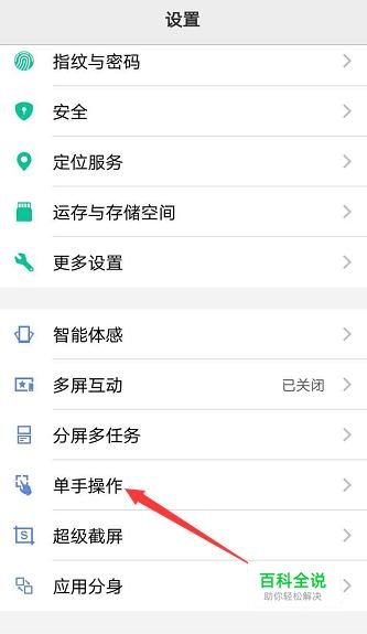 在“设置”里面会看到“单手操作”命令,点击“单手操作”命令。