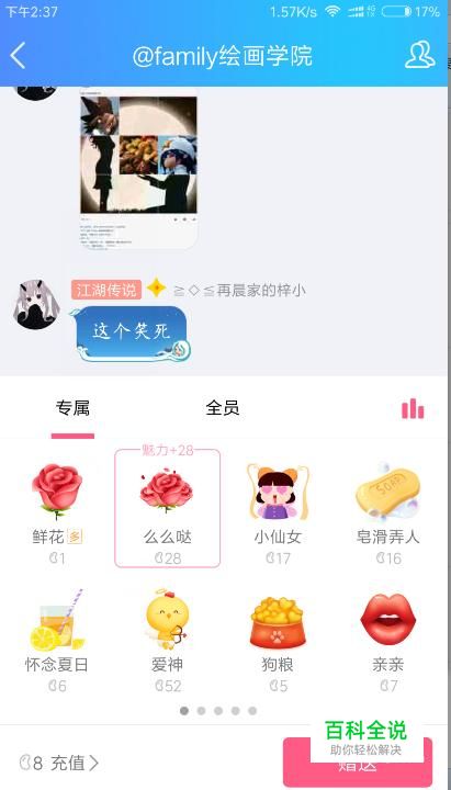 点击了之后就会出现一大堆礼物了,上面也有金豆标注,选择一个礼物赠送。