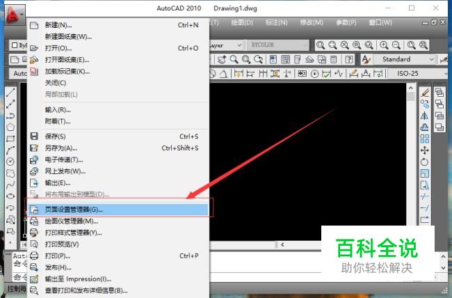在编辑栏中找到文件命令按钮,点击文件,找到页面设置管理器命令按钮,点击页面设置管理器命令按钮。