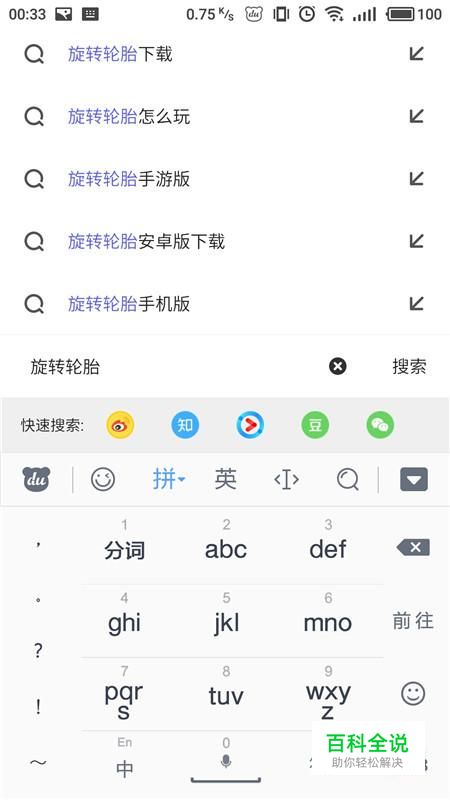 在搜索框中输入“旋转轮胎”,点击“搜索”