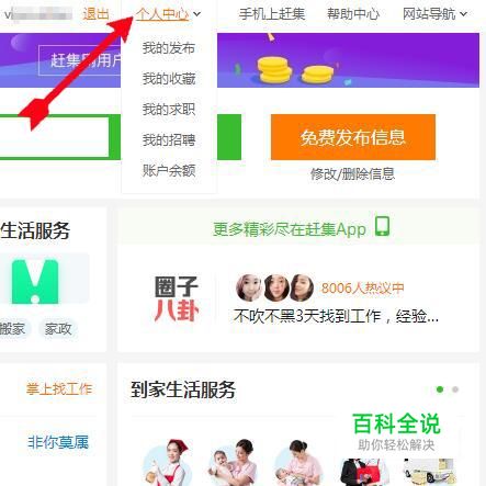 个人用户登陆赶集网,点击“个人中心”