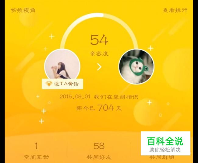 点击进入他的空间界面,那么在其上方就可以看到亲密度数值啦。