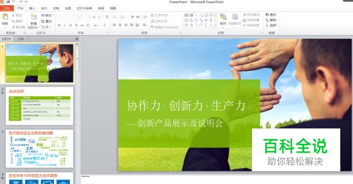 首先打开PPT2010,进入要编辑的文档。图片或文字均可设置动画效果,这里选择图片进行演示。