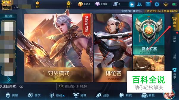 首先把王者荣耀更新到最新版本后,进入游戏点击“商城”。
