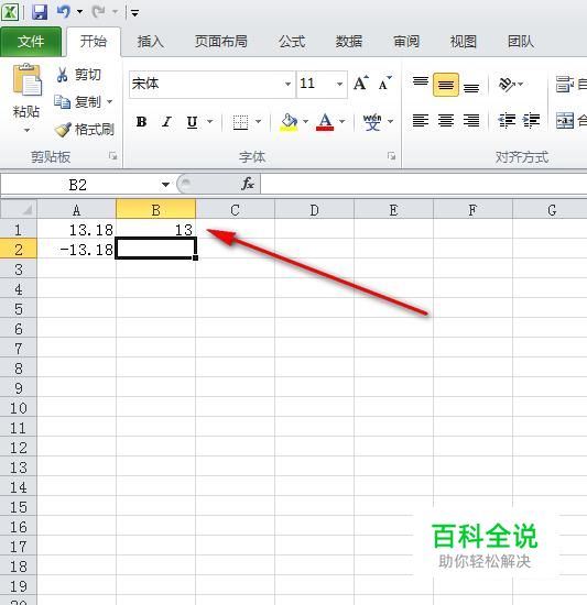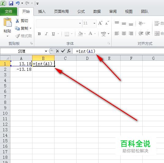 如图,比如我A1单元格有一个数据13.18,接着我们在编辑栏输入公式=int(a1)。
