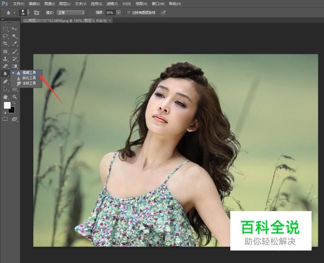 模糊工具主要可以用来凸显人物,虚化背景,选择左侧工具栏的模糊。