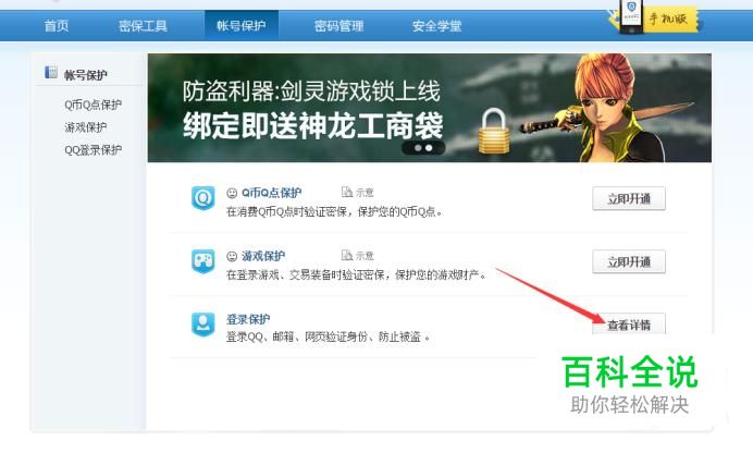 在账号保护界面下方找到“登陆保护”,并点击右方的“查看详情”,从而进入设备锁的相关设置界面。