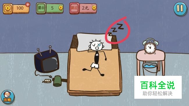第一关:叫醒史小坑 玩法:旁边的电视闹钟都是摆设,将小坑打呼的“Z”擦掉,小坑就会醒来。
