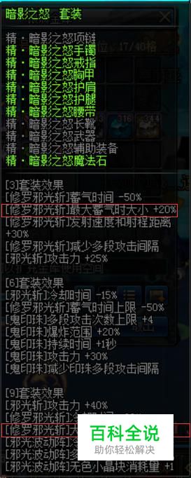 在异次元裂缝做出一套暗影之怒九件,暗影之怒为异界二期装备。九件套是专门加邪光斩。