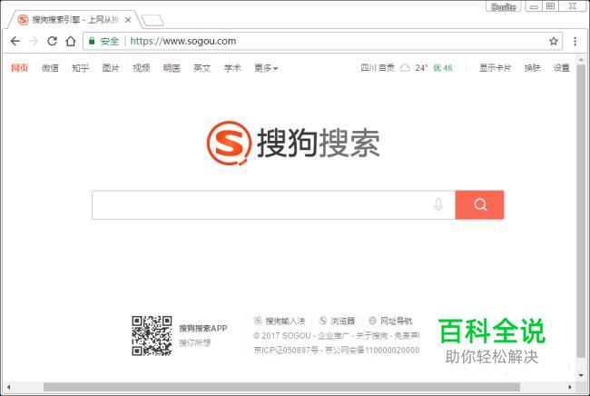 在浏览器输入“https://www.sogou.com/”打开搜狗搜索。