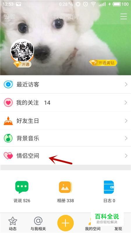 进入我的空间界面,选择“情侣空间”
