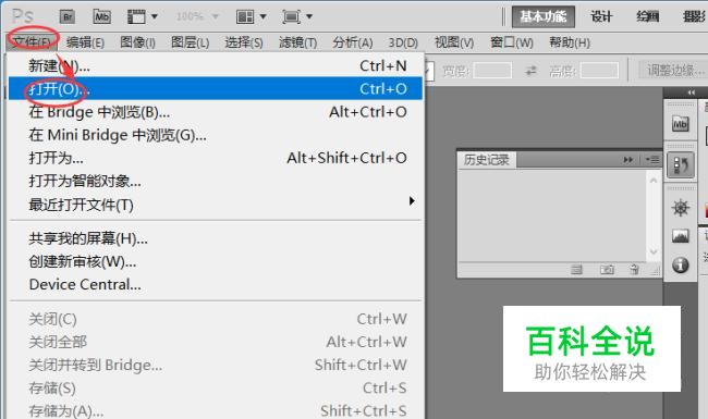 打开Photoshop软件后,点击导航栏上面的【文件】,在点击弹出的下拉菜单中的【打开】选项,如下图所示。