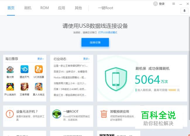 打开刷机软件,用USB数据线将手机连接到软件上。
