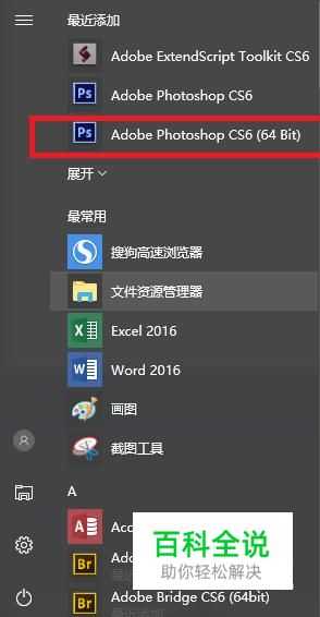 打开安装在电脑中的Adobe Photoshop CS6(64 bit),我电脑是64位系统所以选择64bit,如果是32位操作系统,请选择Adobe Photoshop CS6