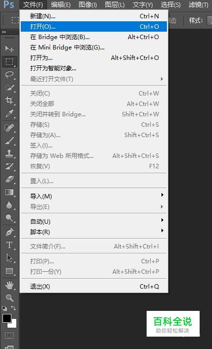 在主菜单选择“文件”标签,在其菜单下选择打开。