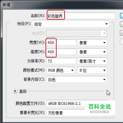 菜单栏:“文件”-“新建” 在弹出的新建窗口中的参数设置如下。