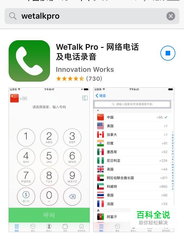 但是我们可以使用一款叫做“Wetalkpro”的应用来实现通话录音。打开手机App Store,搜索下载Wetalkpro,然后下载安装到手机上。如下图所示。