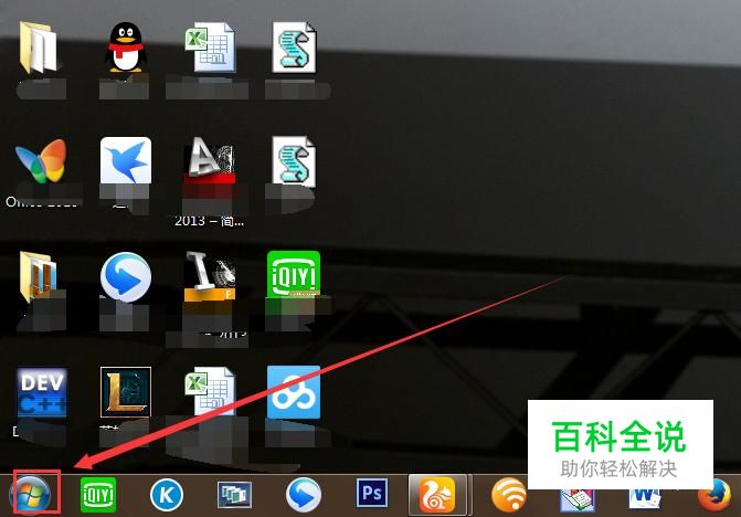 首先我们点击电脑桌面左下角的按钮。如图所示: