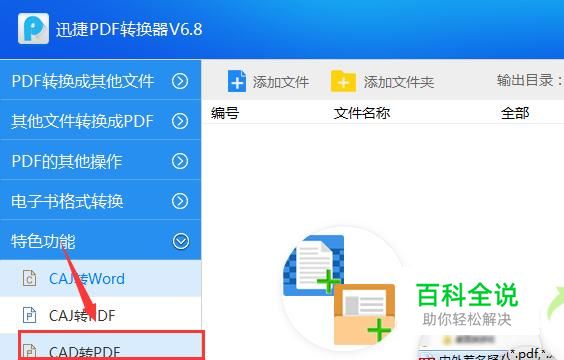 选择“CAD转PDF”之后,再选择“添加文件”,或者是直接拖拽需要转换转换的文件进行添加