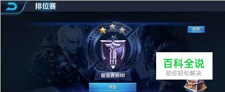 初始段位——倔强青铜: 倔强青铜一共有3个段位,从高到低排列分别是:倔强黄铜I;倔强黄铜II;倔强黄铜III。 其中每个小段位要三星才可以进阶下一个段位。青铜到白银需要9个星。 新号开始玩排位的时候都默认为倔强青铜III。