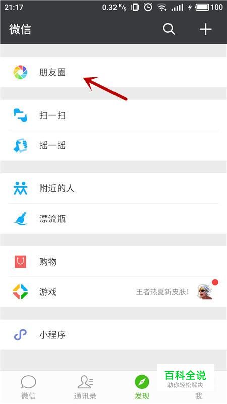 进入发现界面,选择“朋友圈”