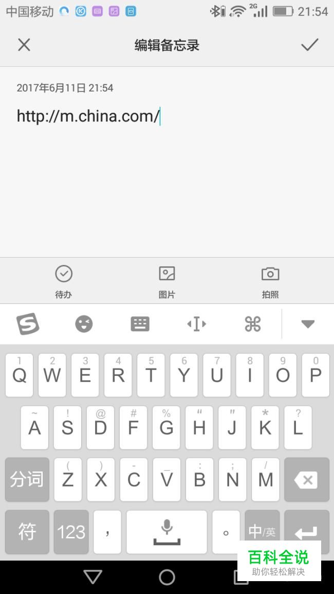 这时我们可以将网址粘贴到备忘录里截图,然后将照片备份到微云。(把网址放到备忘录里我们可以随时查看网址)。