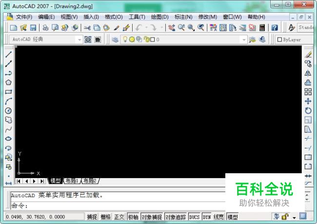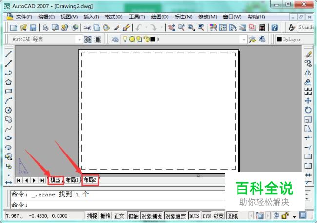 打开软件后,在界面下方将模式从“模型”转到“布局”状态下,如图所示: