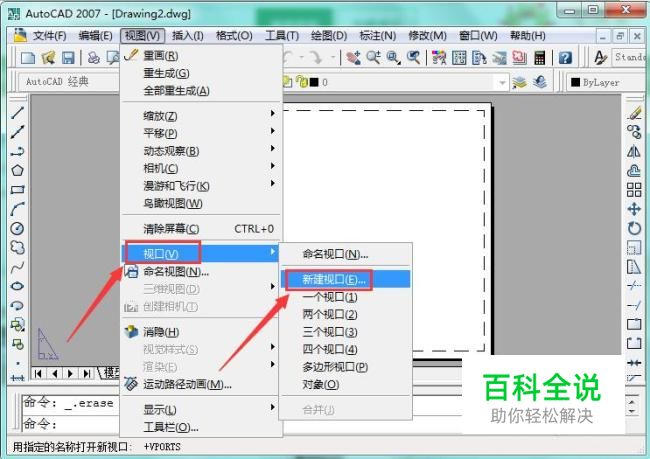 打开“视口”选项,在其子菜单中选择“新建视口”,点击确认,如图所示: