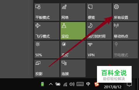 在电脑桌面,点击通知中心里面的所有设置,如图。