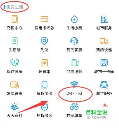 在“便民生活”中找到境外上网这个选项。