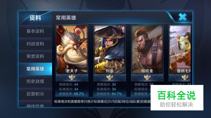 通过点击他人头像查看常用英雄,可以获知英雄熟练度的情况及胜率。