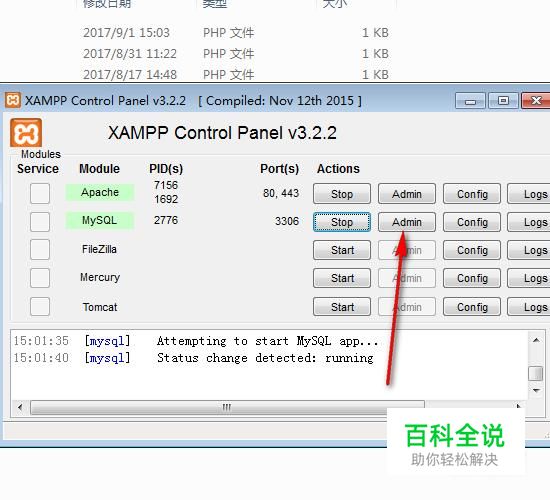 安装xampp,启动Apache和mysql,然后点击“admin”进入mysql管理界面。