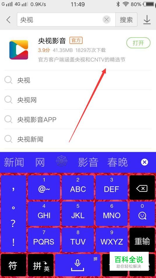 打开手机上面的应用商城,在搜索栏目输入:央视影音,然后点击右侧的下载就会自动下载安装软件。