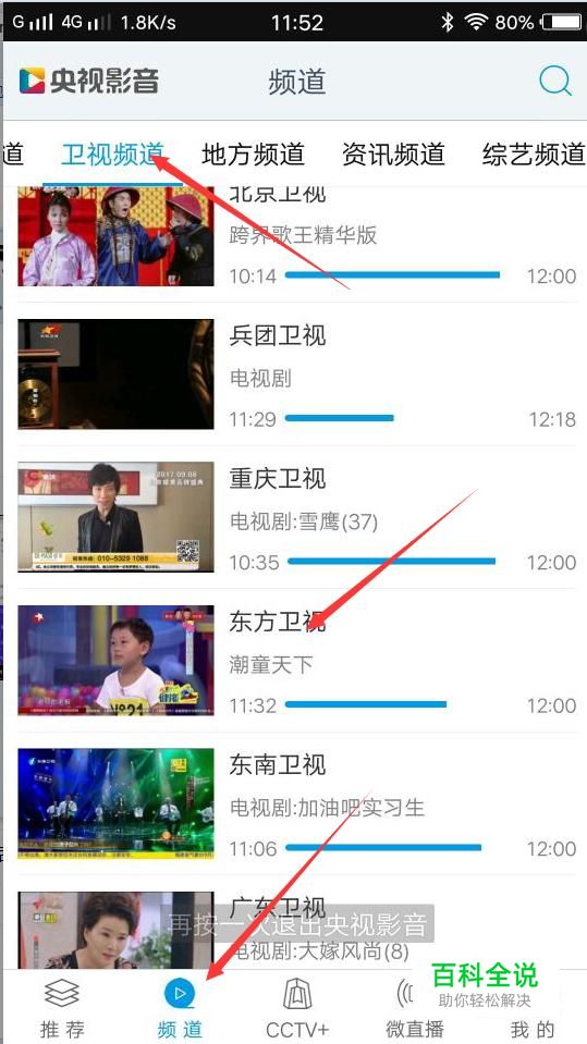 安装好之后打开软件,在软件主页点击下面的频道,在到出现的栏目点击上面的卫视频道。在列表找到东方卫视点击进入!
