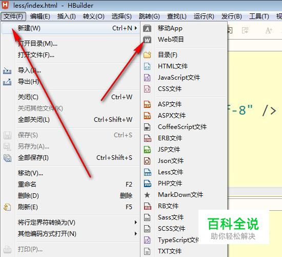 先在hbuilder里面新建一个web项目,如图所示,我新建了一个叫less的项目。