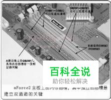 说到在主板上安装内存只要稍微有些经验的朋友都不会觉得有什么难度:按照内存插槽的方向对齐内存条,然后再按下去就行了,然而情况发生了变化,现在安装内存竟然也成了件颇为“复杂”的技术活! 随着nVIDIA的nForce2和Intel的ii865/i875芯片组面世,支持双通道内存技术的主板逐渐被用户所接受而成为市场的主流,然而这些主板在内存使用、搭配与安装方面有着许多新的特点,如果仍然按照老路子去安装内存也许你根本就享受不到双通道带来的好处,甚至还会因为兼容性问题而弄的焦头烂额,那么双通道内存在安装和使用上有什么特别之处呢?我们又如何看出是否工作在双通模式呢?不同的内存组合又会出现什么现象呢?本文会给您一个满意的答案。 一、双通道主板上内存插槽的特殊排列方式 以前的主板上也有3到4个内存插槽(DIMM),根据厂家的规定将它们命名为DIMM1、2、3或4(主板上也有同样的文字用来标明内存插槽的编号),但北桥芯片内只有1个64位的内存控制器,此时插入多根内存后内存总线的位宽还是64位,工作频率也不会改变,但内存的总容量却成倍增加了。这种主板上内存插槽紧密的排列在一起,彼此之间的距离也完全相同。 最新的支持双通道内存的主板主要有Intel的i865/i875和nVIDIA的nForce2芯片组(850/850E、E7205和SiS655/655FX本文不作讨论),i865/i875的北桥芯片(或称为MCH/GMCH,GMCH内置了显示功能)内有A、B两个64位的内存控制器,每个控制器又可以支持两根内存插槽,所以主板上同样有4根内存插槽,编号同样延续了DIMM1、2、3、4的标注方式,不过这4根插槽并非紧密的靠在一起,而是分为A、B两组,当A1与B1或A2与B2两根内存插槽上同时插入两根容量与结构相同的内存条时,才能实现双通道内存工作模式,此外,当四根内存插槽都插入相同的内存时也能进入双通道状态,其他情况下两组内存控制器都会自动转换为一组64位的控制器,这样与传统内存的工作模式就没有区别了。 为了兼顾用户安装的方便,一般主板厂家会在i865/i875主板上使用相同颜色的内存插槽来表示A1与B1的位置,而A2与B2内存插槽则采用另外一种颜色,用户只要将两根内存插入颜色相同的两个内存插槽上就可以实现双通道了。不过凡事总有例外的时候,比如有的厂家习惯用一种颜色的插槽来表示A通道而B通道用另外一种颜色,此时就要打开说明书确认一下,总的原则仍然是“隔行插入”的方式,如果按照主板上内存插槽的编号来看,DIMM1+DIMM3、DIMM2+DIMM4或DIMM1+2+3+4的插入方式才能建立双通道模式(内存也要完全相同)。 nForce2的北桥芯片(或称为IGP/SPP,IGP内置了显示功能)内同样有两个64位的内存控制器,其中A控制器只支持一根内存插槽,B通道则支持两根,A、B插槽之间有一段距离以方便用户识别,A通道的内存插槽在颜色上也可能与B通道两个内存插槽不同,用户只要将一根内存插入独立的内存插槽而另外一根插到另外两个彼此靠近的内存插槽就能组建成双通道模式,此外,如果全部插满内存,也能建立双通道模式,而且nForce2主板组建双通道模式时对内存容量乃至型号都没有严格的要求,使用方便。 理论说的再多,都需要实践的检验,实际上除了刚刚购买电脑的朋友外,手上或多或少的留有一、两根内存条,在建立双通道时这些内存到底还能否使用?下面我们通过实践来掌握建立双通道的窍门,灵活运用、触类旁通。 二、实战——865/875主板双内存通道的安装方法与性能检测 首先需要强调的是对内存条的要求,Intel对组建双通道的内存条有着严格的限制,必须是相同容量、相同结构(如单面、双面或内存颗粒的数量、每个颗粒的位宽等参数必须相同)和相同品牌(不同品牌内存的SPD信息有可能不同)的内存才行。 其次是内存的插入顺序,只有DIMM1+3、DIMM2+4和DIMM1+2+3+4的三种情况才能建立双通道模式,具体应用如下: 1、如果你有两根容量、结构与品牌完全相同的DDR内存,将它们同时插入DIMM1和DIMM3(简写为DIMM1+3)或DIMM2和DIMM4就可以了,此时为双通道模式。下面以P4C 2.4G(800MHz FSB)组建的电脑系统为例来说明不同内存模式对内存带宽和游戏性能的影响。上表中组建的双通道模式能最大限度的发挥P4的性能,即使早期速度较慢的内存也能取得不错的成绩,但关键是两根内存要完全一样,插法也要特别注意。 2、考虑到很多朋友没有800FSB的CPU,这里也作个简单的测试。 上表是将P4 2.4CG“降频”后进行测试而得到的,所以内存的带宽和游戏画面的速度都有了明显的下降,但双通道的作用依然存在,说明了早期P4和早期内存也可以通过i865/i875主板来发挥性能,只不过提升的幅度远没有高主频P4那么明显。 3、如果你有四根完全相同的DDR内存,将四条内存插槽全部插满就能组建双通道模式。 从下表的测试成绩来看,在内存带宽和游戏画面的速度上都和第一种情况类似,而且还要更好一点,说明双通道模式确实建立起来了。 4、如果你有一根DDR内存,无论插入哪个DIMM,都是单通道。 上表说明了单通道模式下P4的性能无法得到充分的发挥,但对于3D游戏来说,内存的速度与延迟似乎比带宽更加重要,因此才会出现使用单DDR400内存时Q3A画面速度快于双DDR266内存(此时双通道的带宽更高)的情况,但在某些需要高带宽的程序上,双通道的作用还是非常明显的,看来要带宽还是要速度,还要根据程序的不同而定,当然最好的解决办法就是上双通道的DDR400啦。 5、如果你有两根