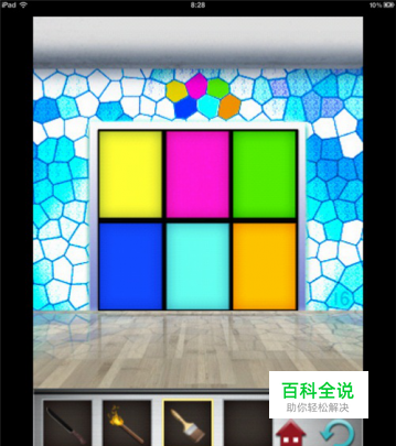 第九十一层、右下角捡到刷子,用刷子刷右下角白色墙角出现数字16然后点击,出现彩色门,按门上面颜色排序后在各点击3下,门开.